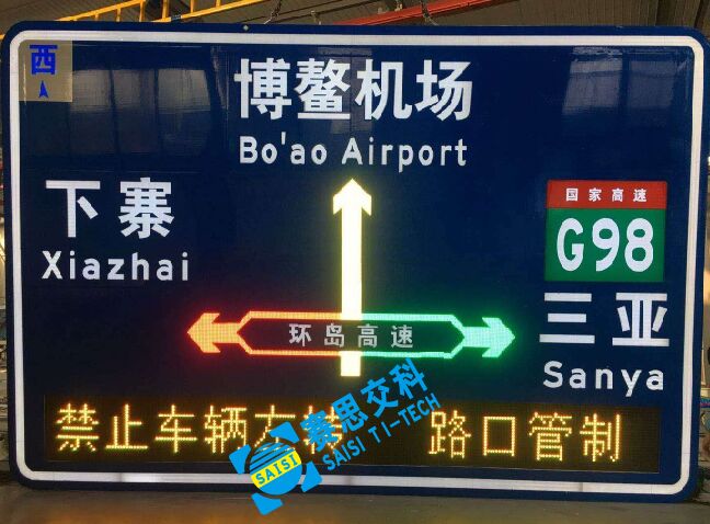2、標(biāo)志版面整體采用主動(dòng)發(fā)光技術(shù),路網(wǎng)框體部分嵌入三基色LED光帶誘導(dǎo)屏體。