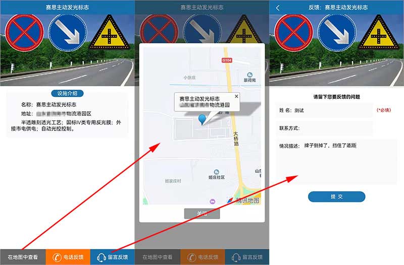 手機(jī)掃描二維碼后打開(kāi)設(shè)施設(shè)備詳情頁(yè)面,可看到當(dāng)前設(shè)施設(shè)備的詳細(xì)資料,可通過(guò)地圖查看當(dāng)前位置,也可通過(guò)撥打電話、留言反饋等方式向后臺(tái)反映問(wèn)題。不僅方便了公眾查詢自己當(dāng)前位置及相關(guān)情況,也方便設(shè)施設(shè)備維護(hù)機(jī)構(gòu)對(duì)出現(xiàn)問(wèn)題的設(shè)施設(shè)備進(jìn)行及時(shí)維護(hù)。