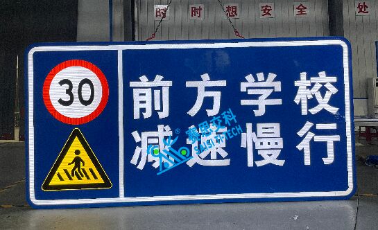 其主要功能:將禁令、警告、指示等多種交通語言信息,根據(jù)交通安全管理需要,融合在一塊交通標志版面中,實現(xiàn)將危險因素預告、駕駛行為禁令、道路指示信息綜合體現(xiàn),在信息表達上更加飽滿、充實,特別針對農(nóng)村學校周邊道路交通安全管控、農(nóng)村大型橋梁進出口交通管控、農(nóng)村商貿(mào)區(qū)進出口交通管控等。采用半透主動發(fā)光標志工藝,效果更加。