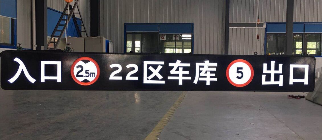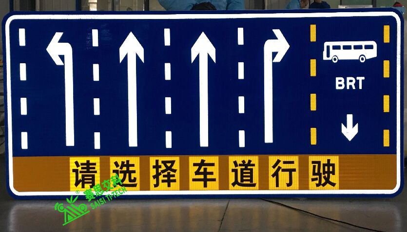 “內(nèi)置LED投射”工藝,主要包括:半投射(半透)和全投射(全透)兩種。半投射工藝,僅適用于版面的文字、字符、圖案、邊款線等為白色的標(biāo)志(如:指路標(biāo)志、指示標(biāo)志、旅游標(biāo)志等),因?yàn)樯钌档姆垂饽ね腹饴实停荒軡M足行業(yè)標(biāo)準(zhǔn)《內(nèi)部照明標(biāo)志》中關(guān)于“透光率大于20%”的指標(biāo)要求,而常常有些指示標(biāo)志中,會(huì)加入禁令、警告標(biāo)志,這種組合型標(biāo)志,就需要多種工藝來(lái)實(shí)現(xiàn)。在我們“賽思企業(yè)標(biāo)準(zhǔn)”中,通常這樣處理:對(duì)于小型標(biāo)志(面積小于4平方米),采用全投射工藝;對(duì)于大型標(biāo)志(面積大于4平方米),其中白色圖案部分采用“半投射工藝”,深色系圖案部分采用“全投射工藝”(如下圖),或外置LED點(diǎn)陣工藝。